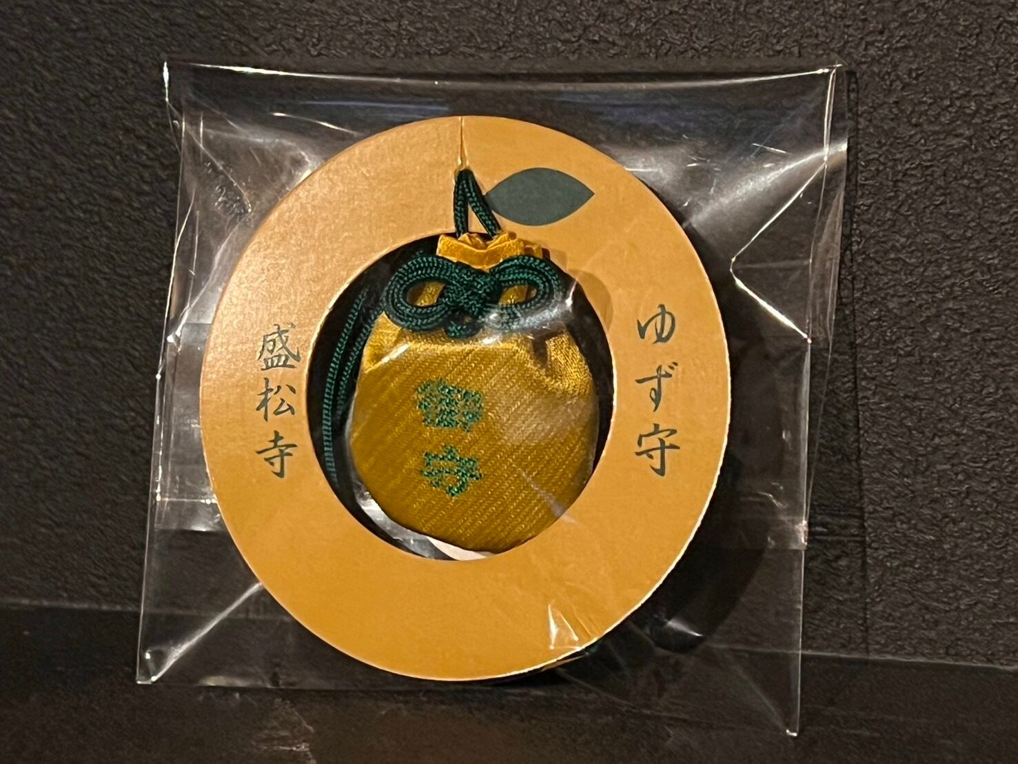 盛松寺の特徴でもある「弘法大師ゆかりの柚子」をモチーフに、柚子の形をしたお守りをお作りいたしました。お守りの中には弘法大師御守護の板札が入っており、常にお大師さまを念じ肌身離さずお待ちになられることにより厄難にあってもお大師さまのご加護が受けられるよう念じたお守りです。